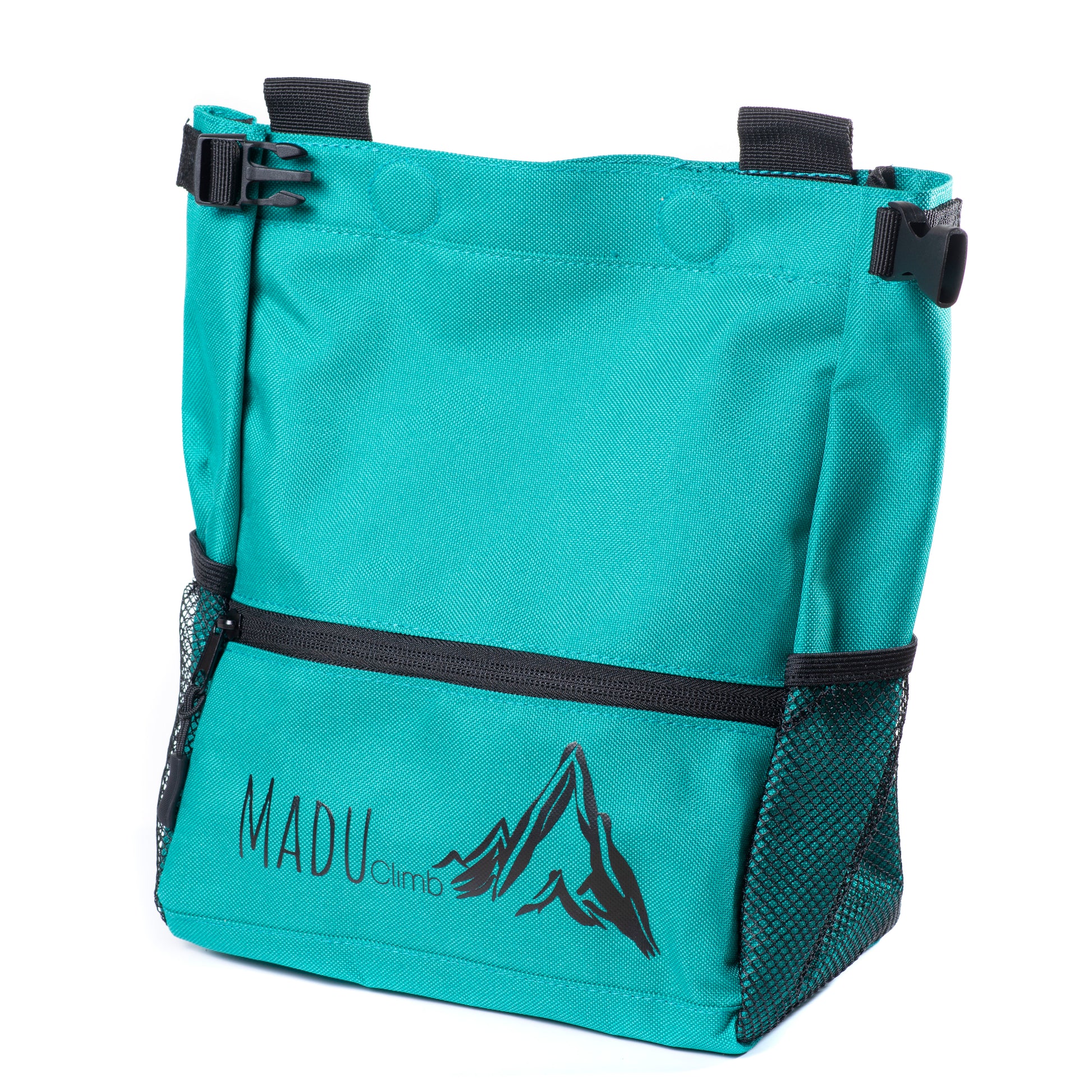 Our bouldering chalk bucket is designed with practicality in mind, offering two large zippered pockets perfect for securely storing your smartphone, keys, or other valuables. Additionally, two side net pockets provide quick-access storage for essential climbing gear like tape or liquid chalk. With two integrated brush holders, you'll always have your brushes at hand for cleaning holds, ensuring your gear stays organized and your focus stays on the climb.
